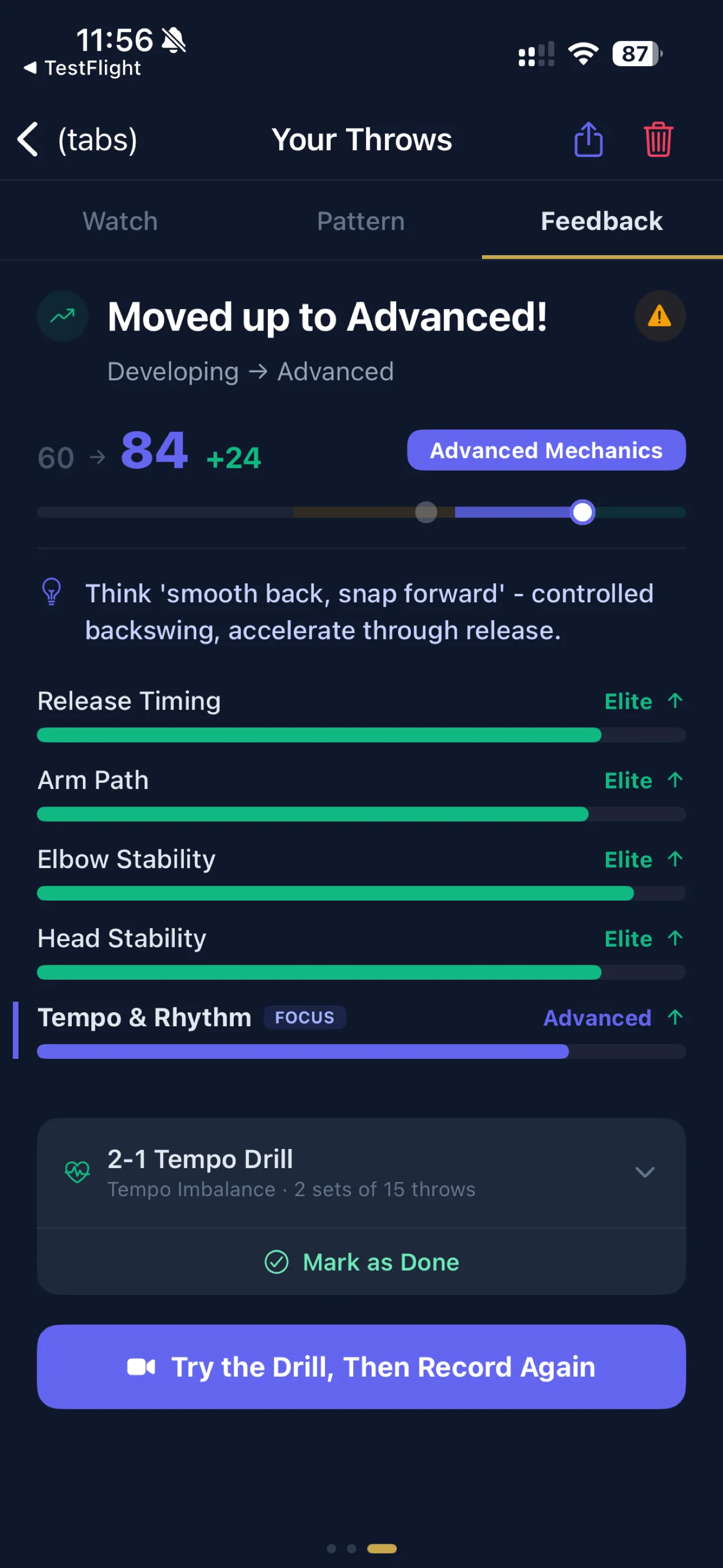 OcheIQ Feedback - Moved up to Advanced with metric bars